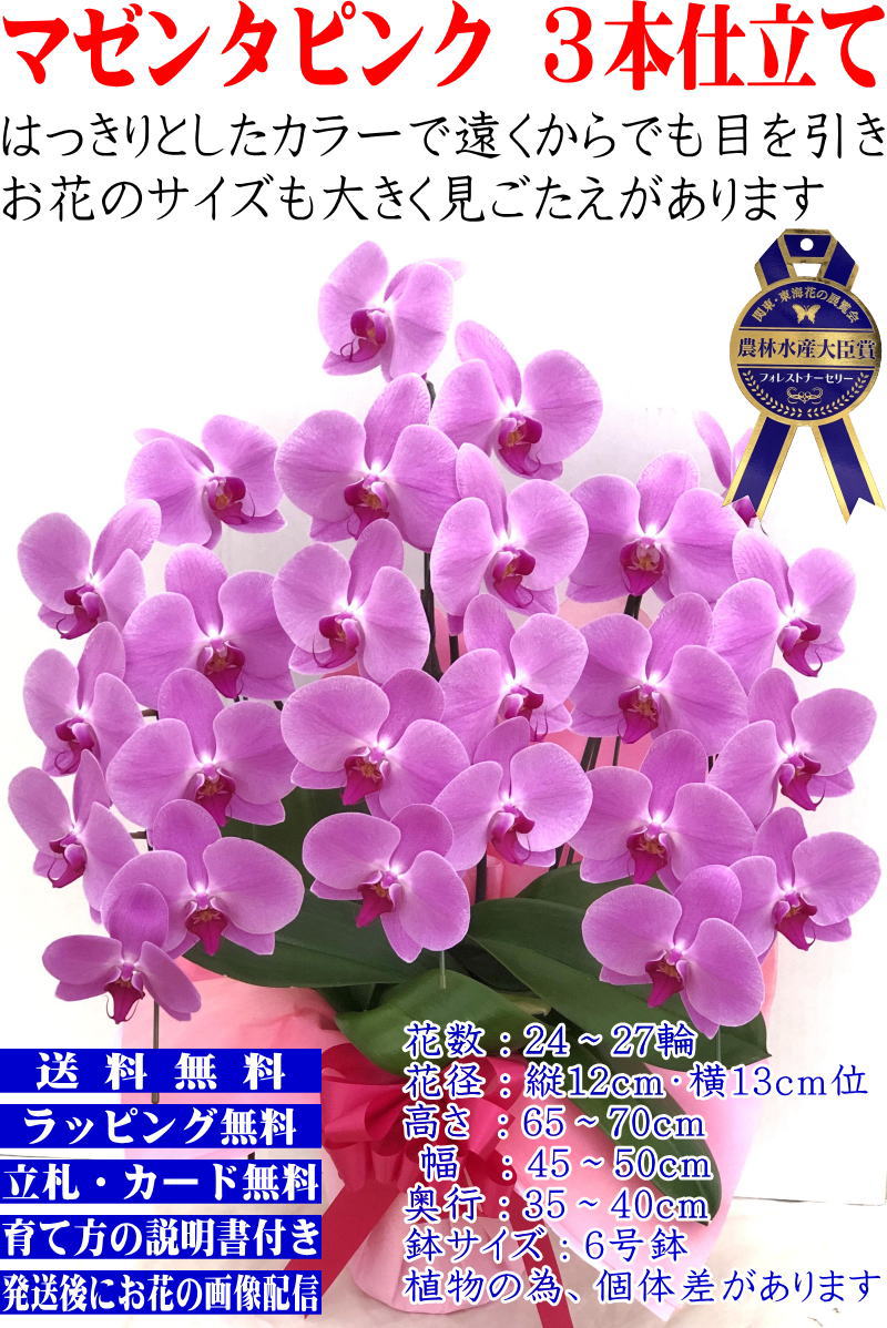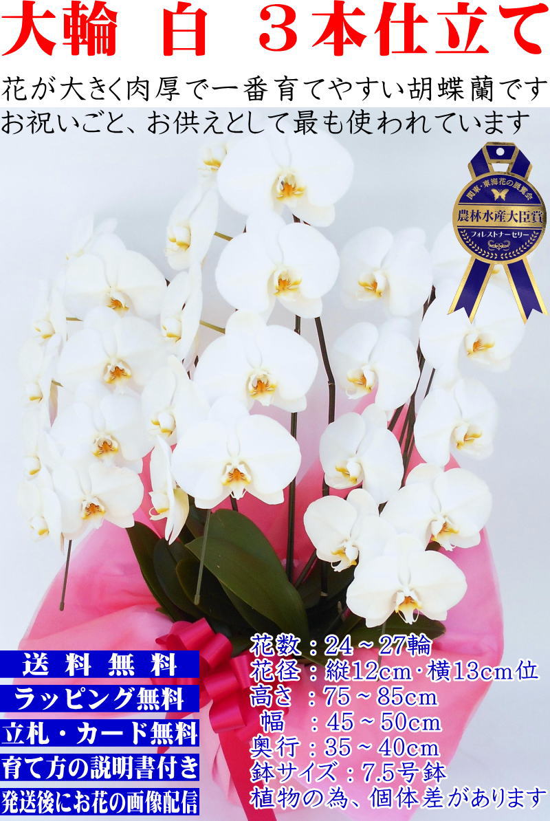 胡蝶蘭 お祝い 開店祝 開院祝 開業祝 移転祝 当選祝 白 ピンク 胡蝶蘭専門店フォレストナーサリー 森洋蘭 胡蝶蘭3本立ち大輪 お祝い 胡蝶蘭お供え叙勲就任退職還暦米寿新築誕生日花ギフト母の日父の日敬老の日 お中元 あす楽 胡蝶蘭 3本立 大輪(24〜27輪) 胡蝶蘭